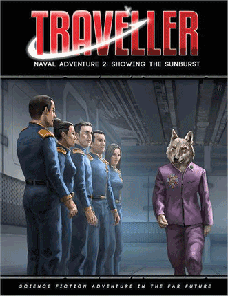 2: Showing the Sunburst (37pp, retail $12): Taking command of a warship assigned to the troubled Jewell-Vilis naval station, the Travellers set out on what looks like a simple flag-showing mission. Actually they're ordered to quietly locate misappropriated Imperial ships (without appearing to look for them), and to make a decision when they succeed. Should they deprive pro-Imperial factions of their means of self-defense? Should they look closely at how the ships were obtained? And what of the situation on Arden? An officer from a foreign power faces trial and execution there. Is it in the interests of the Imperium to support the process, or to obstruct it? Weighty decisions are made under the sunburst banner, and a mistake could move a tense situation another step towards war.