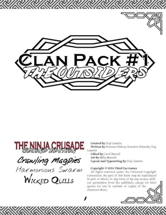 Get the complete Second Edition NINJA CRUSADE rulebook, three full-length sourcebooks, the location guide LAND OF SEED AND BLOSSOM, and two Clan Packs – all as non-watermarked, DRM-free .PDF ebooks
