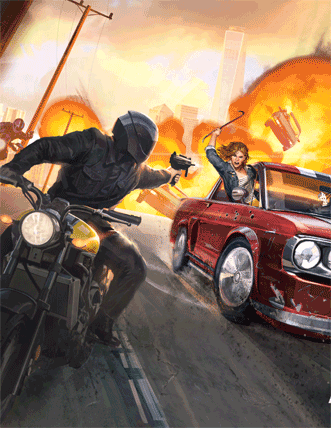 EVERYTHING YOU NEED for your own high-adrenaline cinematic roleplaying campaign of action heroes, enemies, chases, stunts, gunfire, chases and stunts amid hails of gunfire, and explosions – lots of explosions