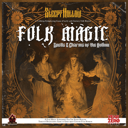 Folk Magic: Spells & Charms of the Hollow (70pp, retail $10): From whispered charms to protective wards, this book delves into the everyday magic of cunning folk, healers, and witches, passed down through generations and rooted in survival, belief, and fear. Learn how to craft simple spells, call upon written charms, and navigate the dangerous consequences of meddling with forces best left undisturbed. Perfect for both players and GMs, this book enhances the Sleepy Hollow experience with atmospheric lore, new mechanics, and adventure hooks.