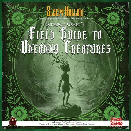 Ichabod Crane's Field Guide to Uncanny Creatures (68pp, retail price $10): Written by Ichabod Crane, a reluctant scholar and once-skeptic turned expert on the uncanny, this Field Guide is a chilling catalog of the strange creatures that haunt Sleepy Hollow and environs. With pious detachment Crane documents fourteen (14) Creatures of the Night, including the Graveyard Golem, Trotterhead, Night Mare, Hollow Revenant, and (of course) the Headless Horseman, as well as other spirits, witches, undead, and other shadowy entities that stalk the edges of reality; and, additionally, sixteen (16) Otherworldly Beings inspired by New England folklore, including Black Philip, the Pine Barrens Devil, Jack O' Spider, the Corpse Knot, and the grotesque Squonk.